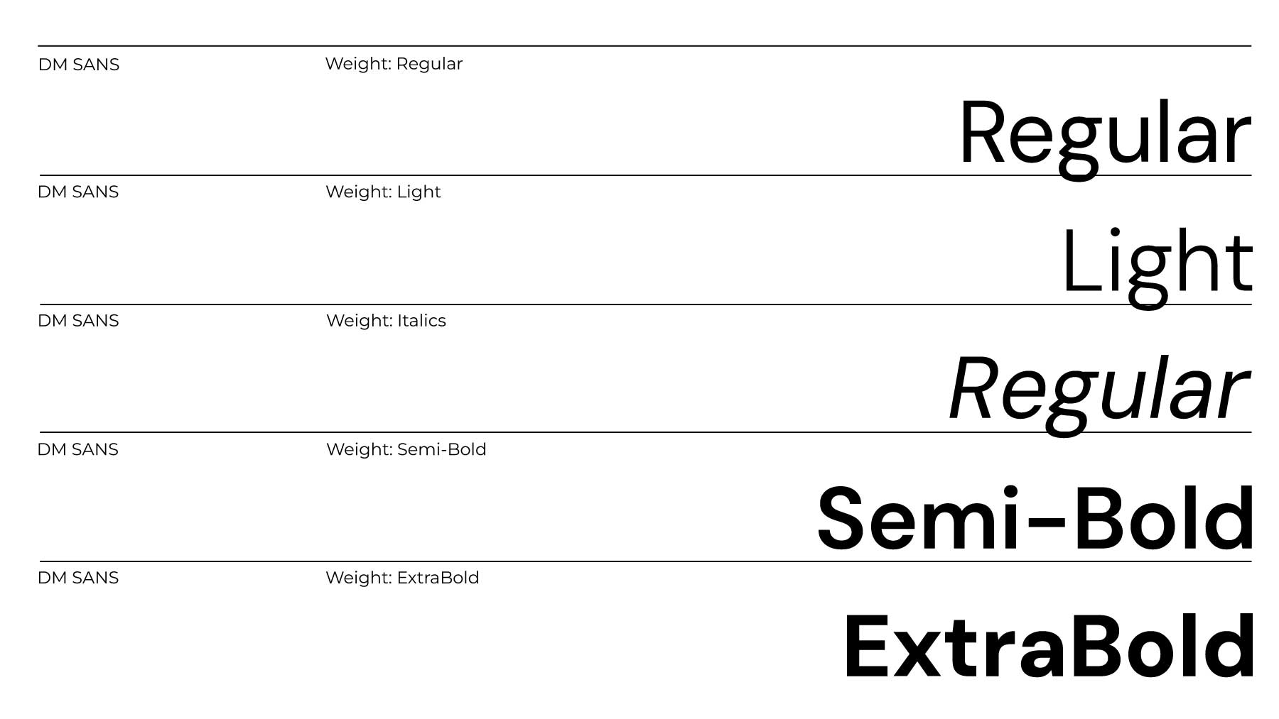 Our secondary typeface is DM Sans, a modern sans-serif that pairs cleanly with our primary font. It’s ideal for subheadings, labels, digital interfaces, and financial disclosures—bringing clarity and accessibility to formal layouts.